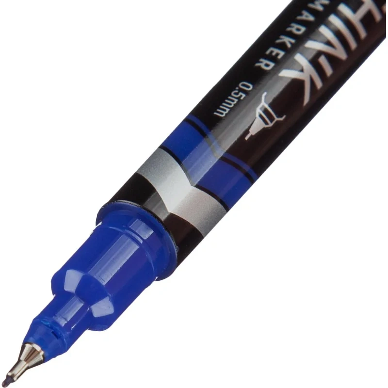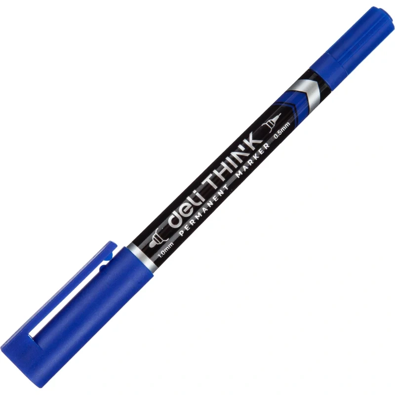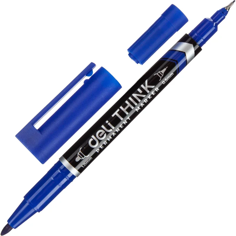 Маркер перманентный Deli Think синий, 0.5/1мм, двусторонний