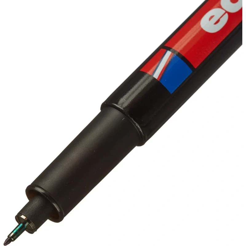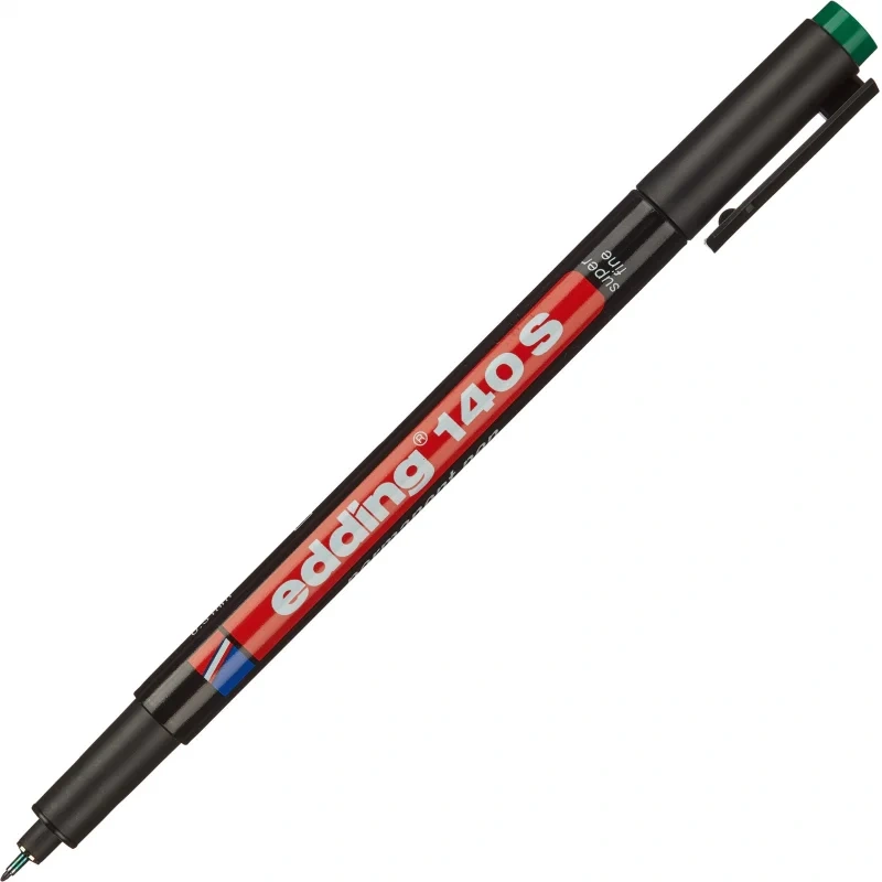 Маркер оснащён очень тонким круглым наконечником диаметром 0.3 мм, что позволяет наносить высокоточные линии. Чернила быстро сохнут, являются водостойкими и гарантируют долговечность маркировки, даже после долгого времени. Они сохраняют свою яркость и чёткость на различных гладких поверхностях, включая пластиковые папки и проекторные плёнки.