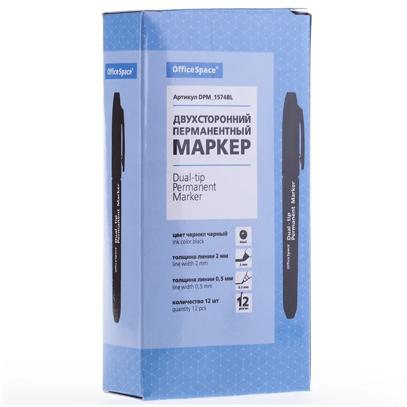 Маркер перманентный двухсторонний OfficeSpace черный, пулевидный, 0,8/2,0мм