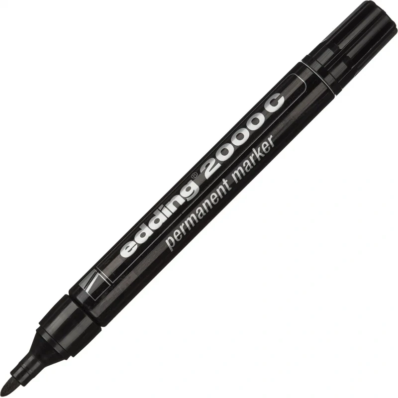 Маркер перманентный Edding 2000C черный, 1.5-3мм, круглый наконечник, универсальный, заправляемый, алюминиевый корпус