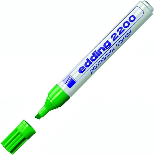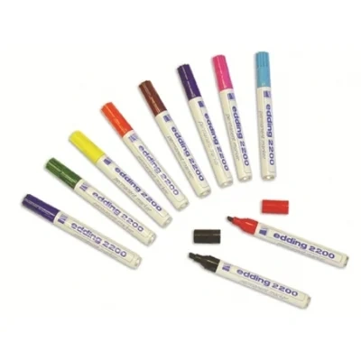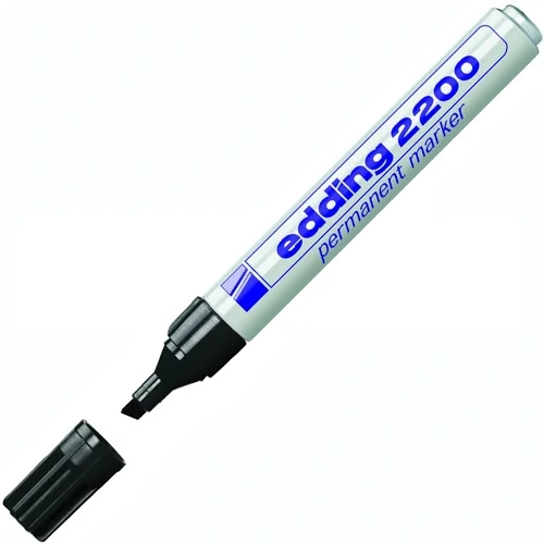 Пишущий узел маркера Edding-2200 изготовлен так, что при письме не требует сильного нажатия на маркер. Надпись, нанесенная маркером Edding 2200, устойчива к выгоранию, устойчива к смыванию водой. Чернила маркера Edding 2200 практически без запаха. Маркер заправляется чернилами Edding Т-25.