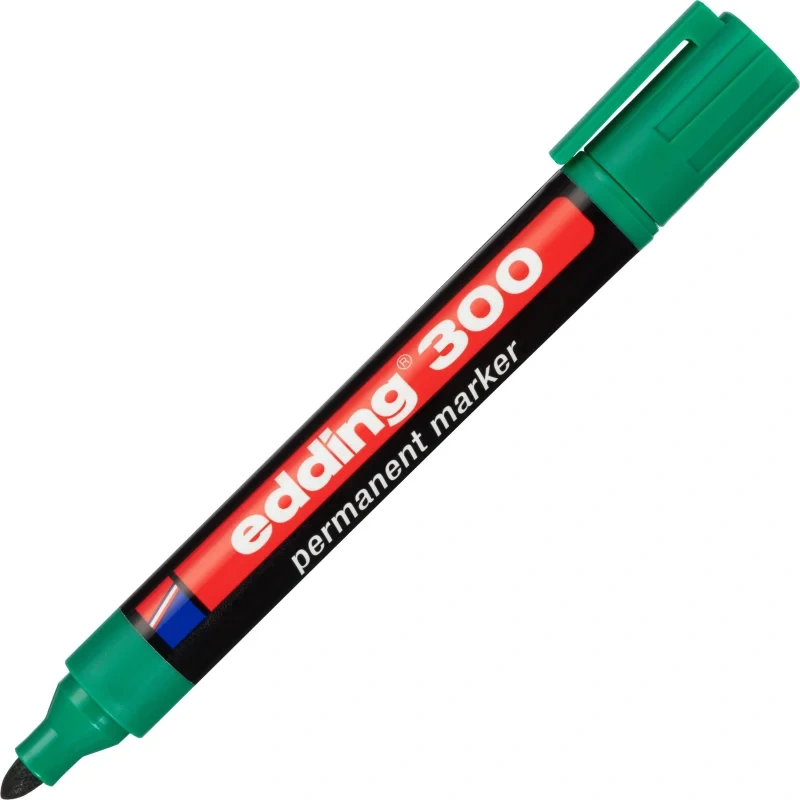 Маркер перманентный Edding 300 зеленый, 1.5-3мм, круглый наконечник, универсальный, заправляемый