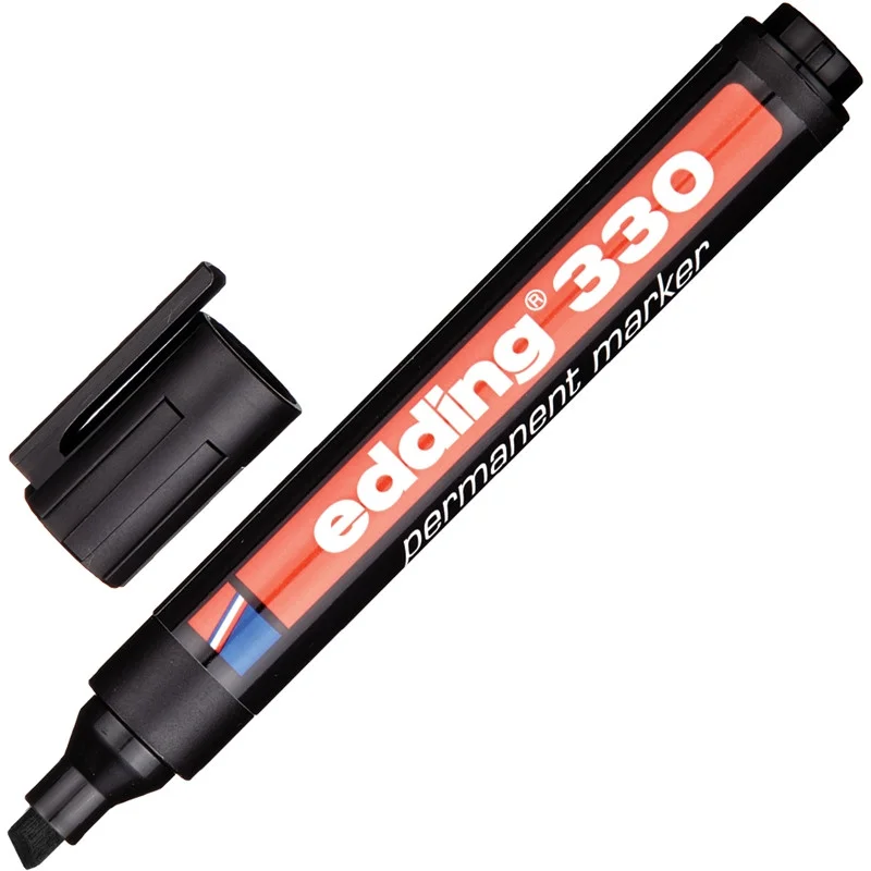 Маркер перманентный Edding 330 черный, 1-5мм, скошенный наконечник, универсальный, заправляемый