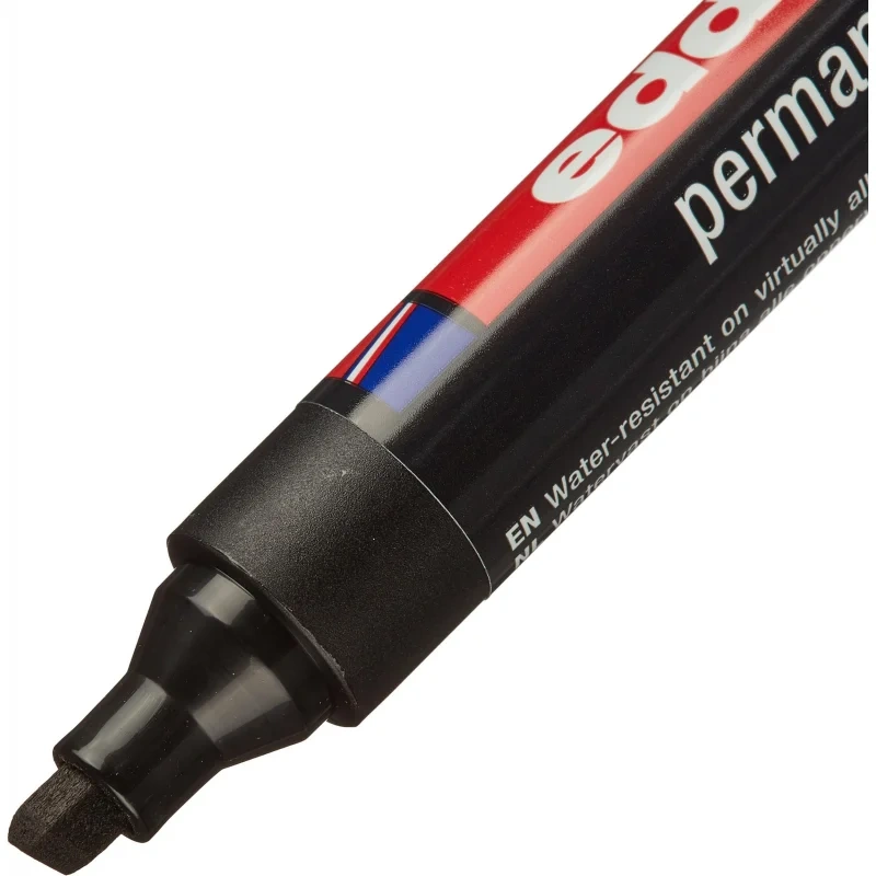 Клиновидный наконечник маркера Edding 330 позволяет делать как тонкие надписи, так и широкие без потери качества и непрерывности линии.
