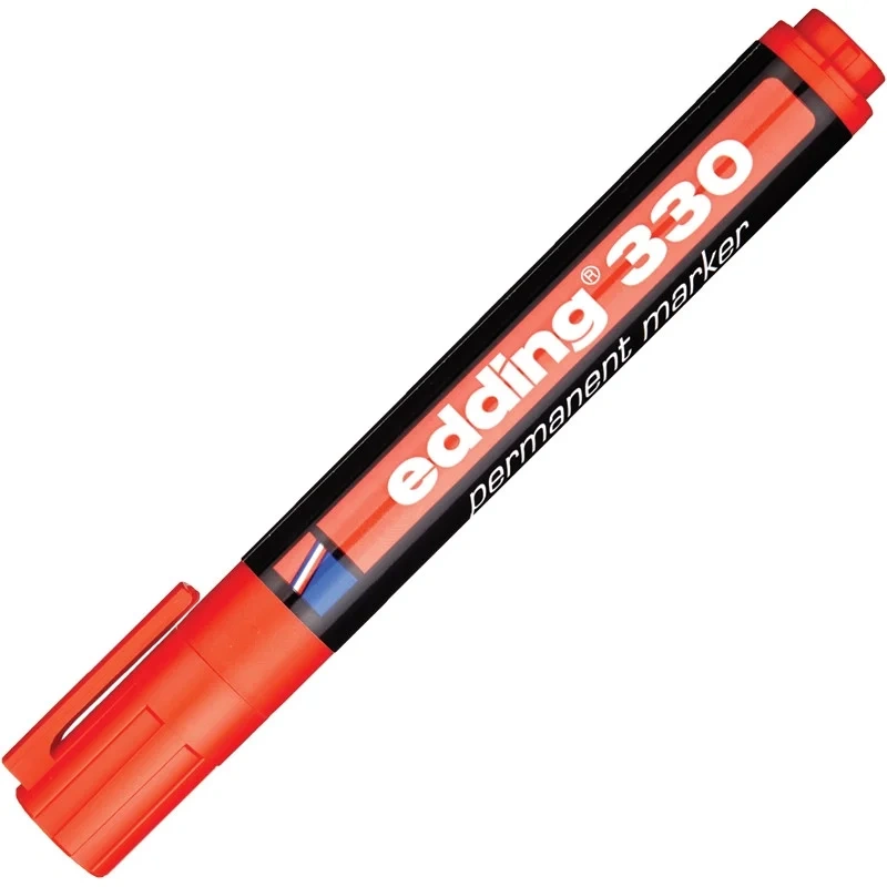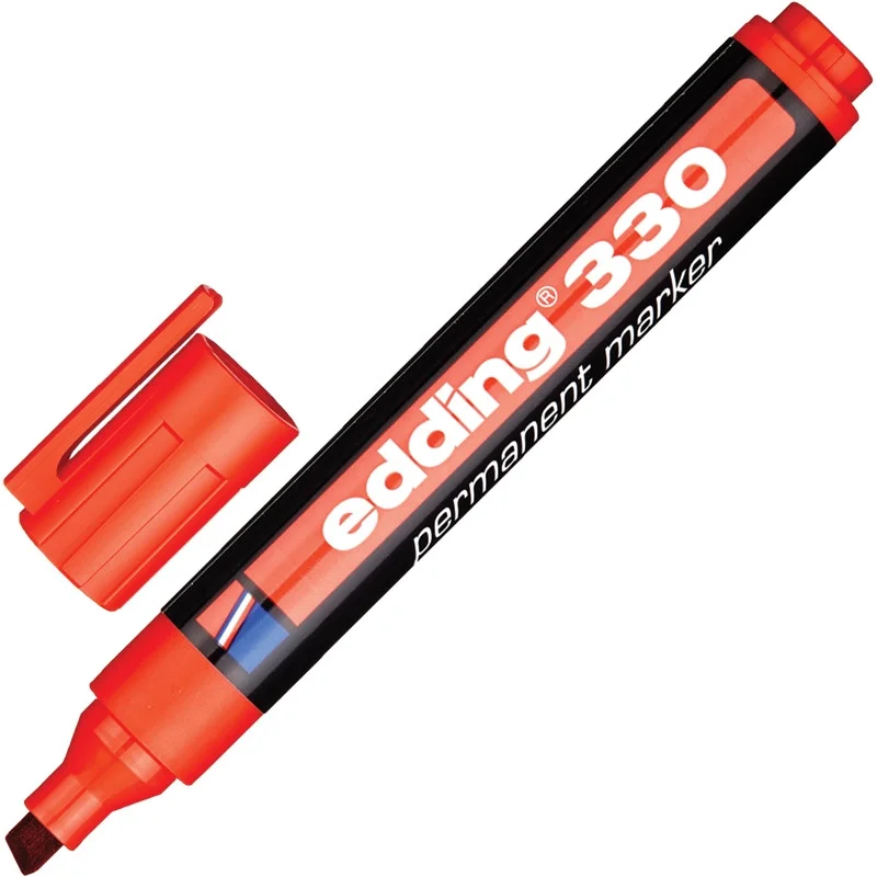 Маркер перманентный Edding 330 красный, 1-5мм, скошенный наконечник, универсальный, заправляемый