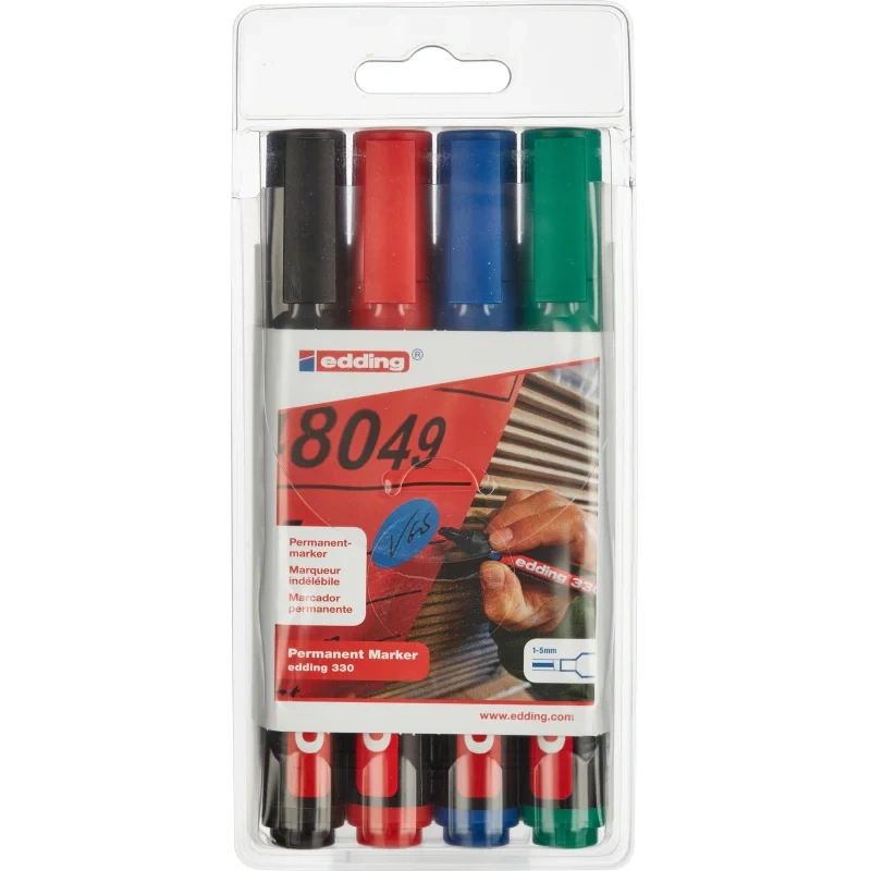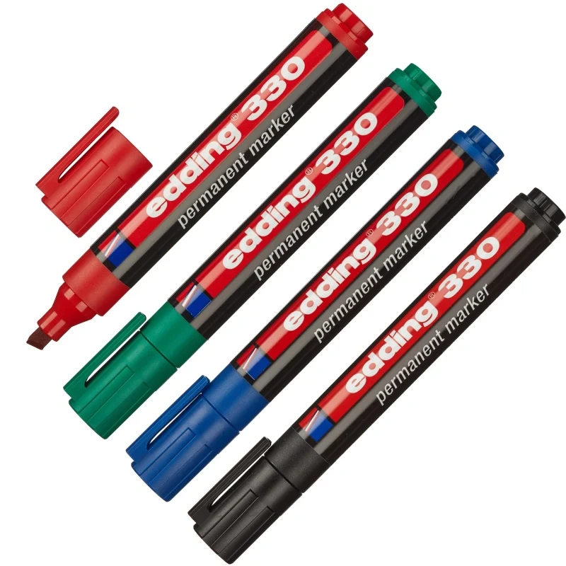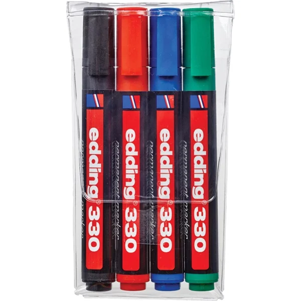 Набор перманентных маркеров Edding 330 набор 4 цвета, 1-5мм, скошенный наконечник, универсальный, заправляемый