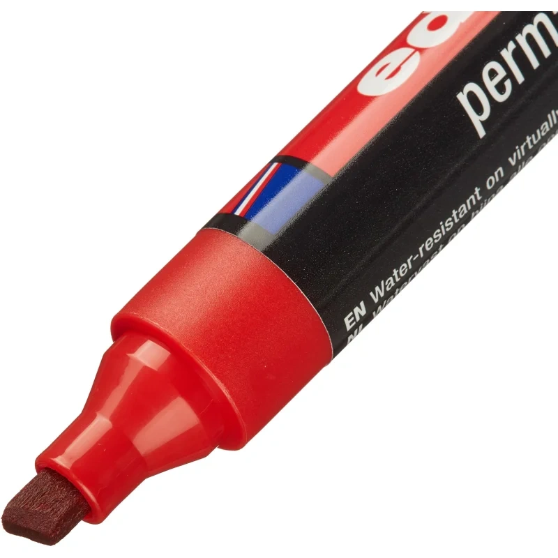 Клиновидный наконечник маркера Edding 330 позволяет делать как тонкие надписи, так и широкие без потери качества и непрерывности линии.