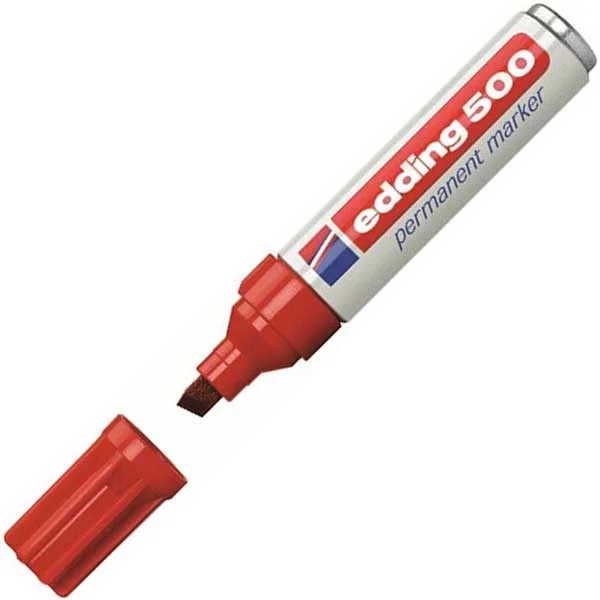 Маркер перманентный Edding 500 красный, 2-7мм, скошенный наконечник, универсальный, заправляемый