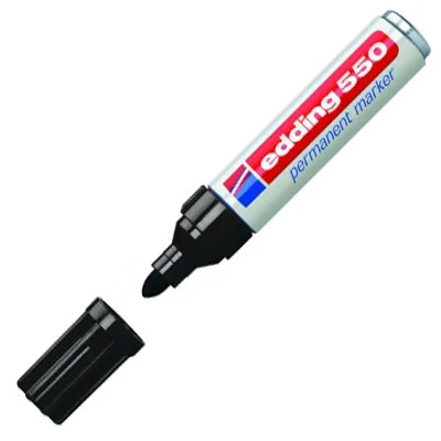 Пишущий узел маркера edding-550 изготовлен так, что при письме не требует сильного нажатия на маркер. Надпись, нанесенная маркером edding 550, устойчива к выгоранию, устойчива к смыванию водой. Чернила маркера edding 550 практически без запаха. Маркер заправляется чернилами edding Т-25.