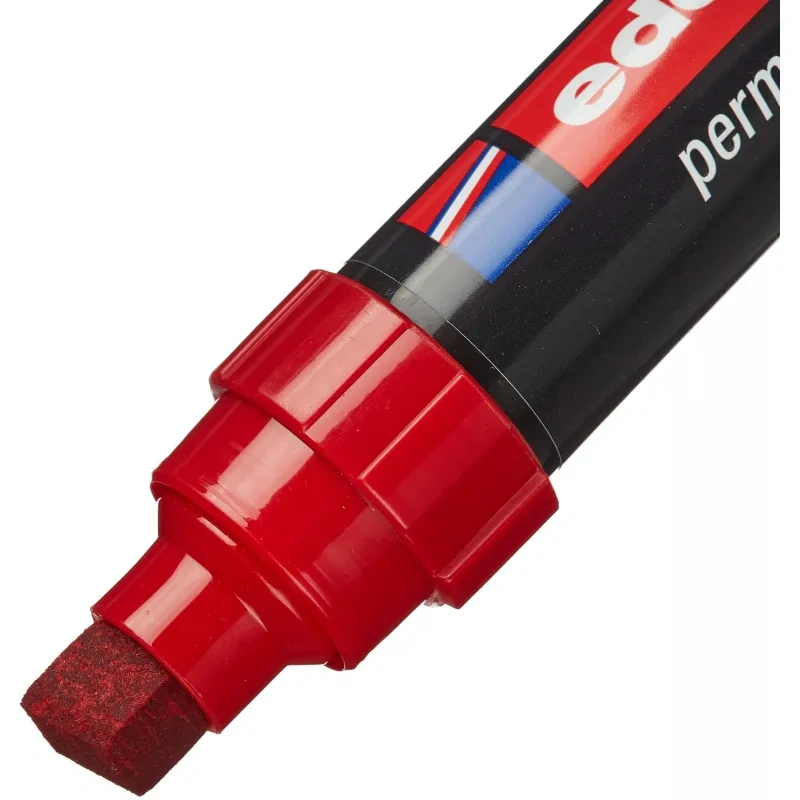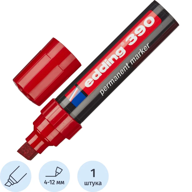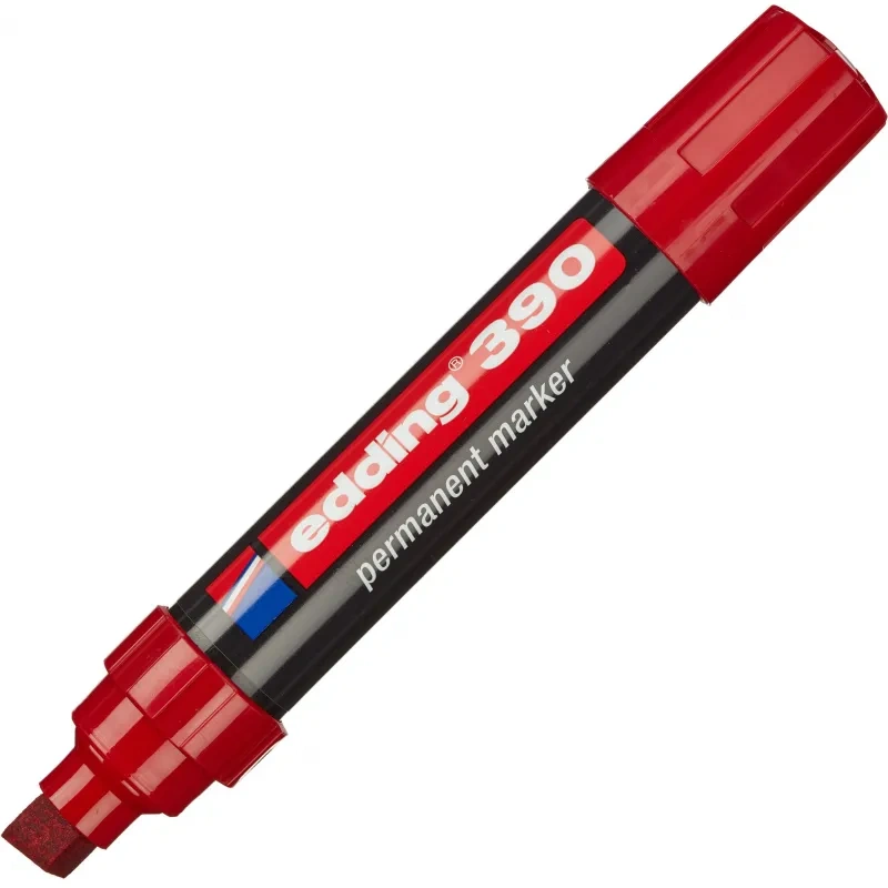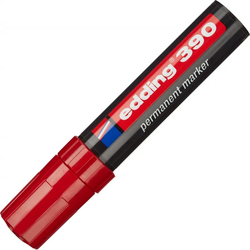 Маркер перманентный Edding E-390/2 в прочном пластиком корпусе. Нестираемые светостойкие чернила на спиртовой основе. Идеально подходит для надписей на металле (в том числе и на грязном), картоне. Может использоваться для таких поверхностей, как дерево, стекло, пластик, керамика, кафель, различные пленки. Скошенный наконечник позволяет провести линию толщиной от 4 до 12 мм. Edding E-390/2 является заправляемым. Страна производства — Германия. Цвет — красный.