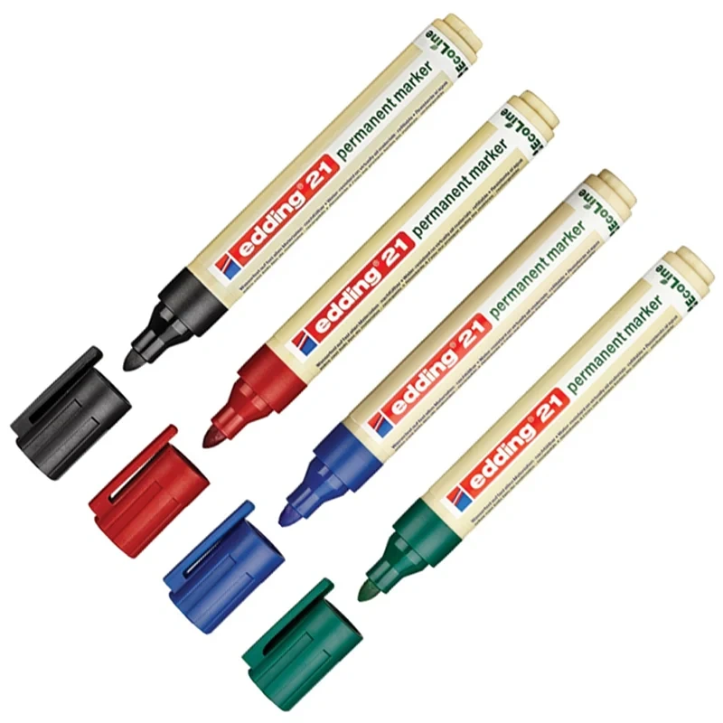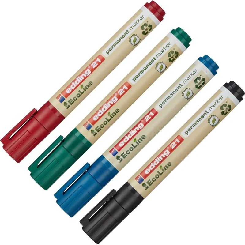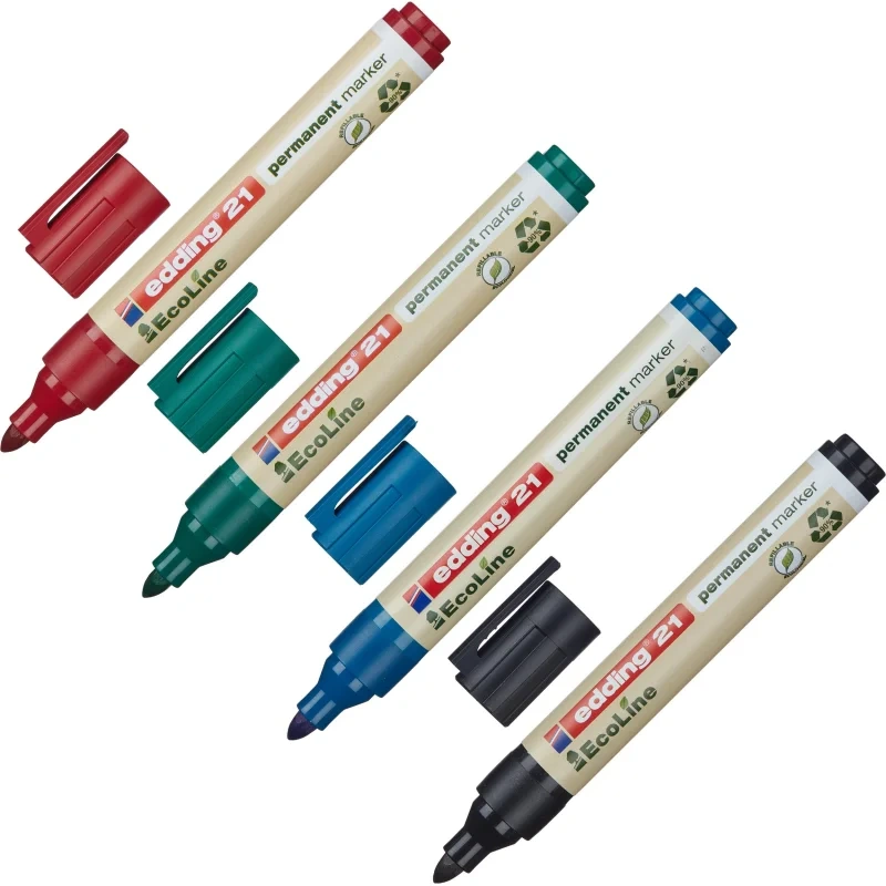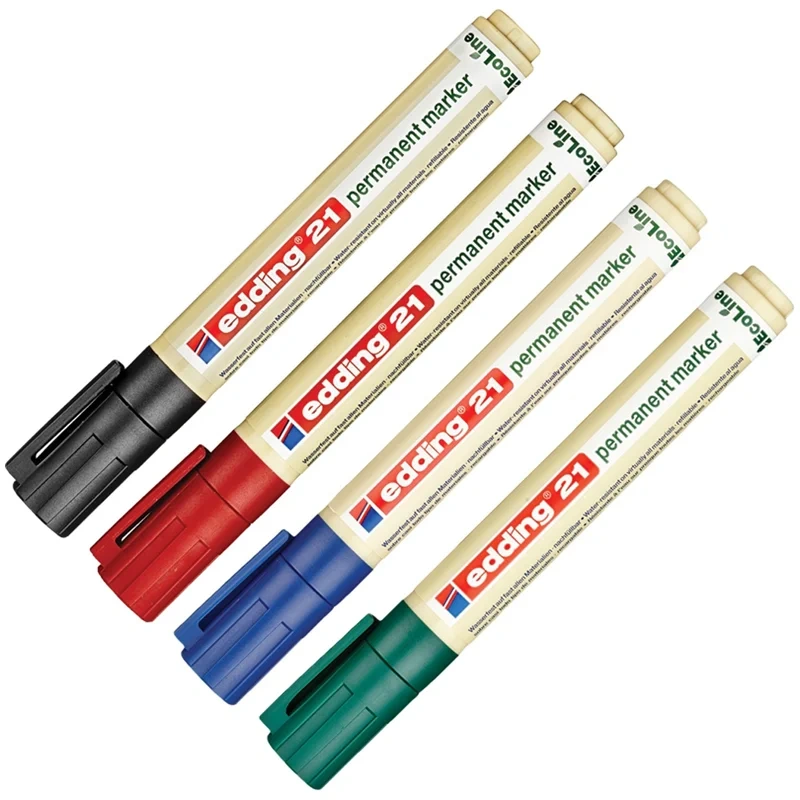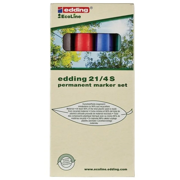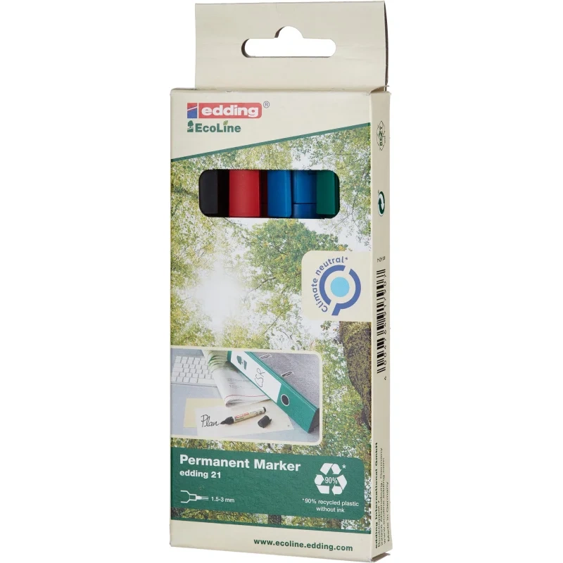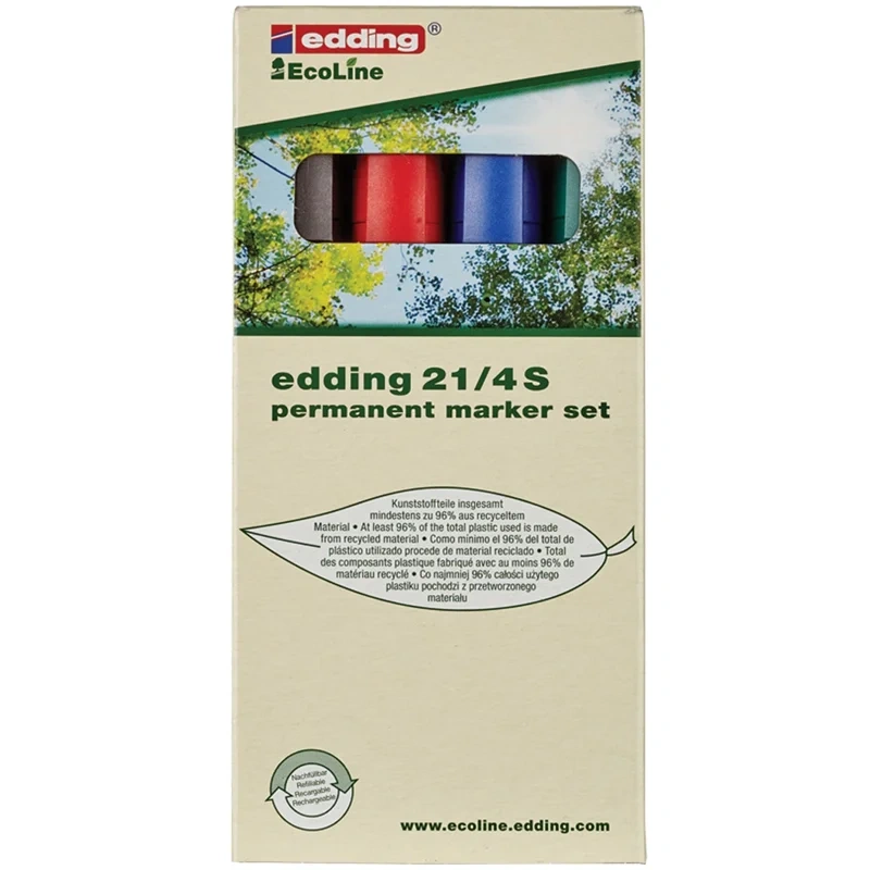 Набор перманентных маркеров Edding ECO 21 набор 4 цвета, 1.5-3мм, круглый наконечник, универсальный, без запаха