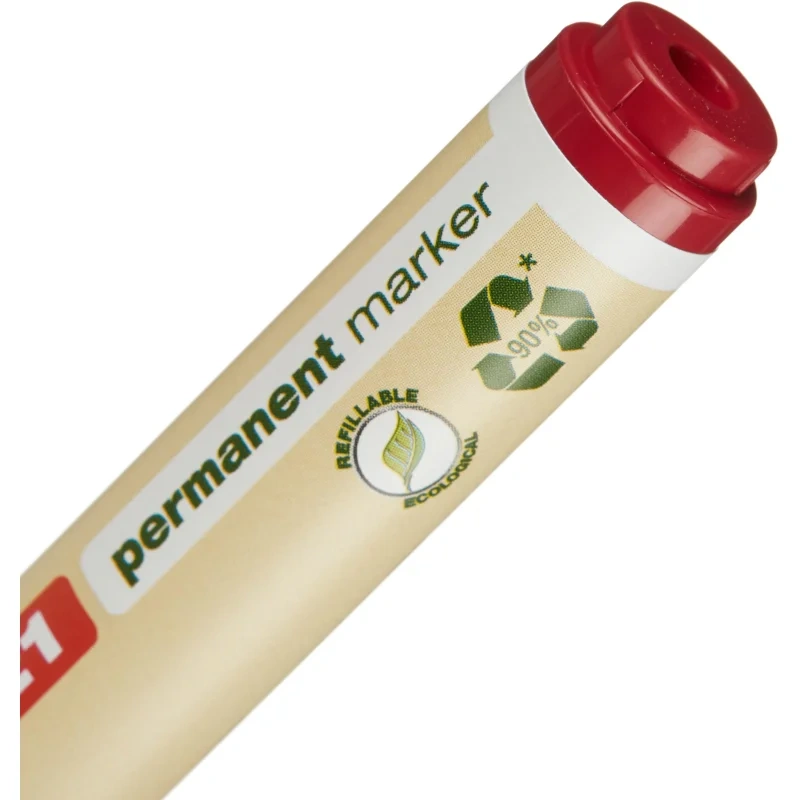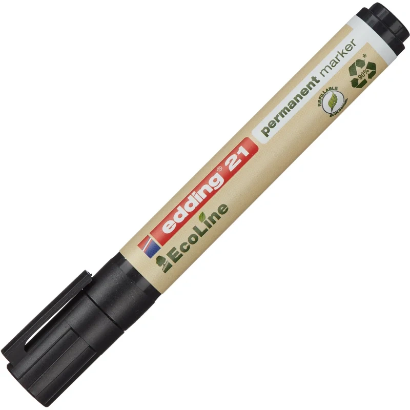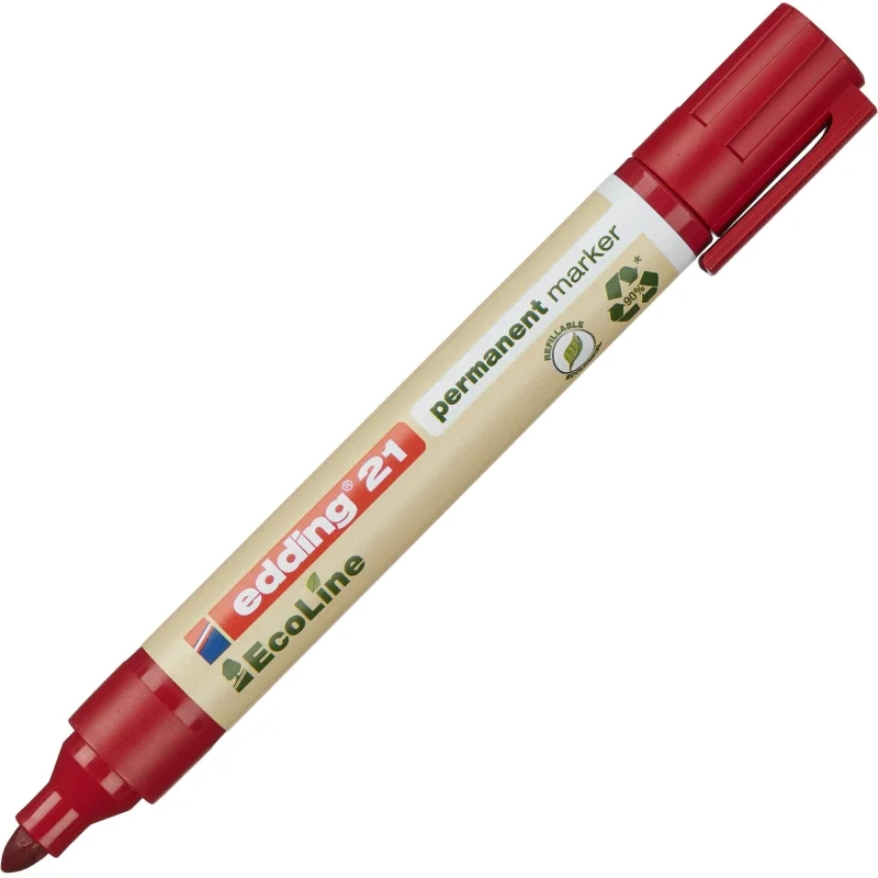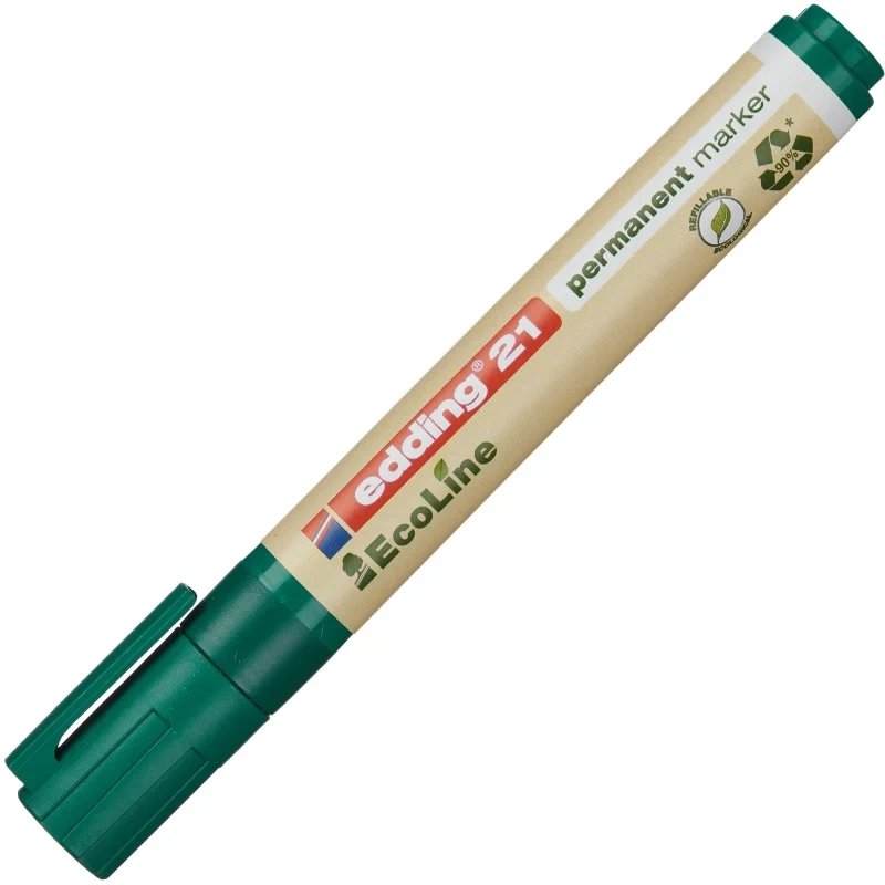 Набор перманентных маркеров Edding Eco E-21/4S в эргономичном пластиковом корпусе минимум на 80% изготовлен из возобновляемого сырья. Быстросохнущие нестираемые чернила на спиртовой основе без добавления толуола и ксилола почти не имеют запаха, устойчивы к истиранию, свету и воде. Идеально подходит для надписей на металле (в том числе и на грязном), картоне. Может использоваться для таких поверхностей, как дерево (в том числе влажное), стекло, пластик, керамика, кафель, различные пленки. Наконечник круглой формы обеспечивает толщину линии от 1.5 до 3 мм. Размеры маркера: диаметр 19 мм, длина 138 мм. Размер упаковки: 172×21×68 мм. Страна производства — Германия. В наборе 4 цвета: синий, черный, зеленый, красный.