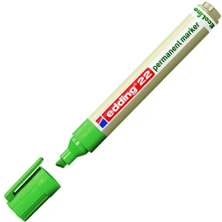 Маркер перманентный еdding-22 EcoLine служит, для нанесения надписей, маркировки и рисования практически на всех поверхностей. Для маркера используется чернила cap-off, с помощью чернил cap-off, маркер может оставаться открытым без колпачка некоторое время и качество не пострадает. Чернила обладают светостойкостью и быстро высыхают на поверхностях. Чернила водостойкие и износостойкие практически на всех поверхностях. Тушь без добавления толуола/ксилола, практически без запаха. Специальный состав чернил edding на спиртовой основе при хранении не разъедает поверхность, на которую нанесена.
