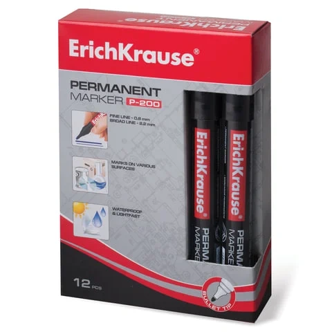 Маркер перманентный Erich Krause P-200 черный, 0.8-2.2мм, пулевидный наконечник