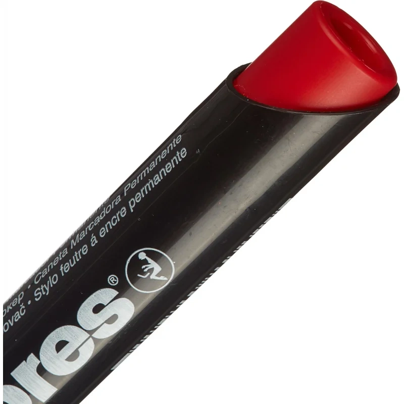 Перманентный маркер со скошенным наконечником. Цвет чернил: красный. Нестираемые чернила на спиртовой основе. Подходит для письма на различных поверхностях. Позволяет проводить линии толщиной 3-5 мм. Безопасно при использовании по назначению. Рекомендовано хранить в горизонтальном положении в сухом месте при температуре от 10 до 30°C. Маркеры соответствуют требованиям ТР ТС 007/2011. Устойчивость к высыханию при открытом колпачке до 10 дней.