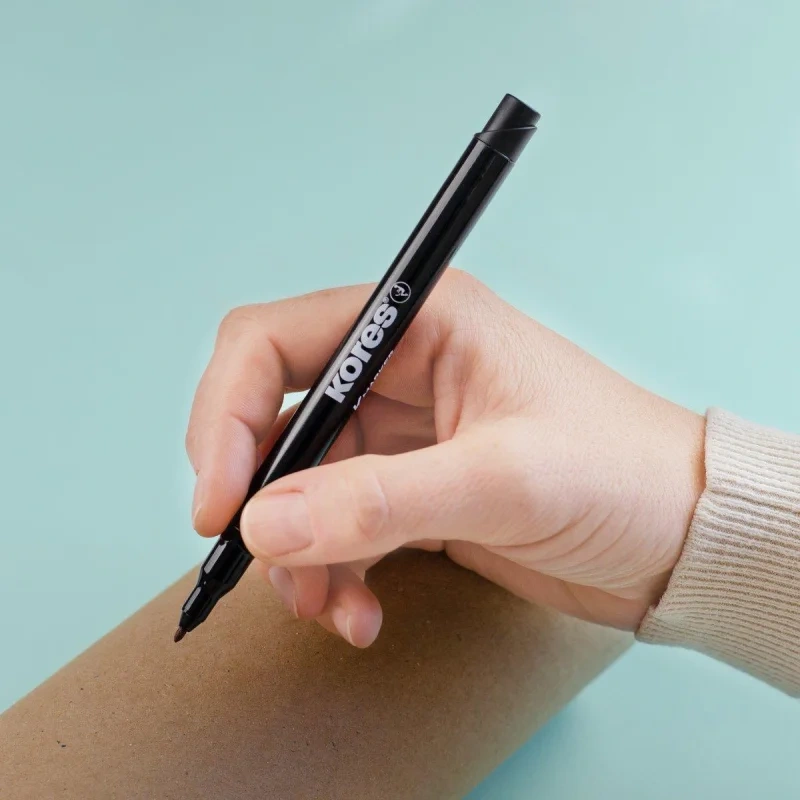Перманентный маркер Kores с круглым наконечником. Цвет чернил: оранжевый, красный, розовый, фиолетовый, синий, бирюзовый, коричневый, салатовый, зеленый, черный. Нестираемые чернила на спиртовой основе. Подходит для письма на различных поверхностях. Позволяет проводить линии толщиной 1 мм. Безопасен при использонии по назначению. Хранить в горизонтальном положении в сухом месте при температуре от 10 до 40 C. Размеры маркера: 146×21 мм, размер упаковки: 147×190×22 мм.