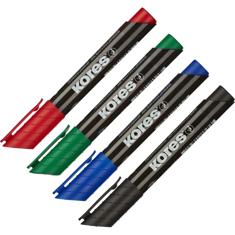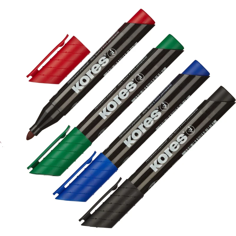 Набор перманентных маркеров Kores набор 4 цвета, 1.5-3мм, круглый наконечник
