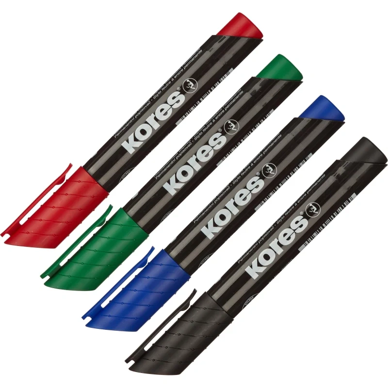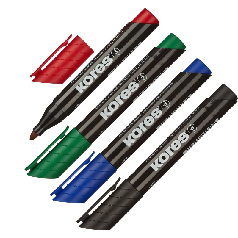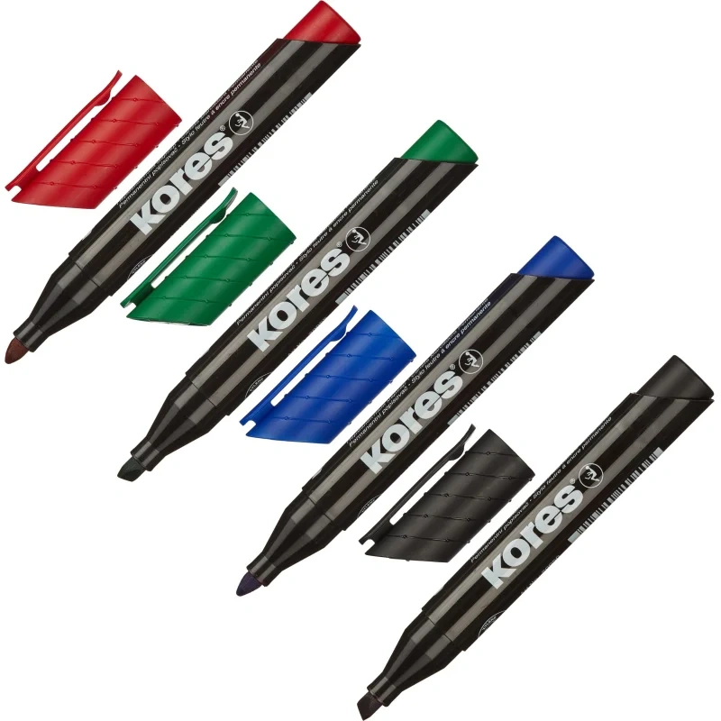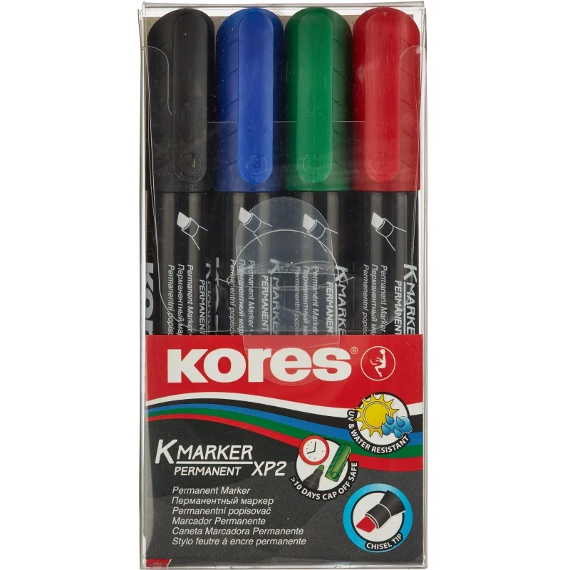 Набор перманентных маркеров Kores набор 4 цвета, 3-5мм, со скошенным наконечником