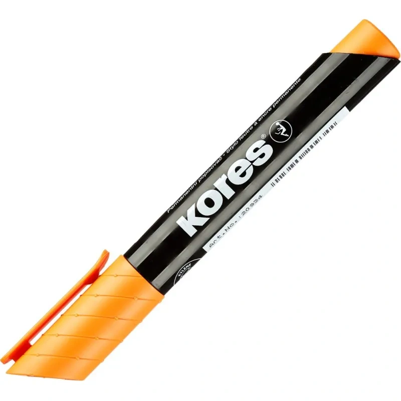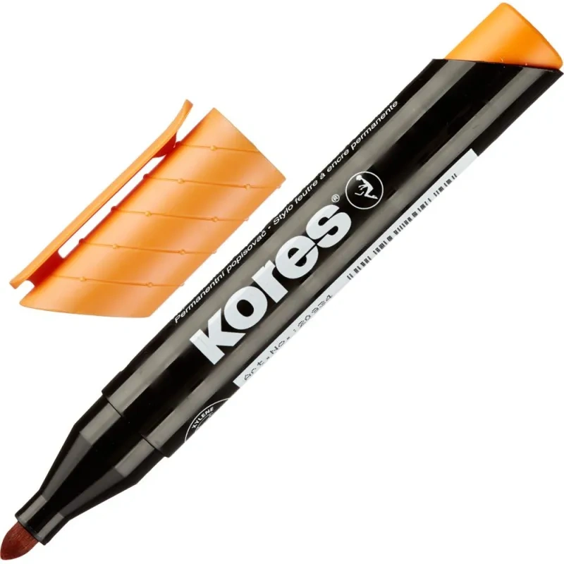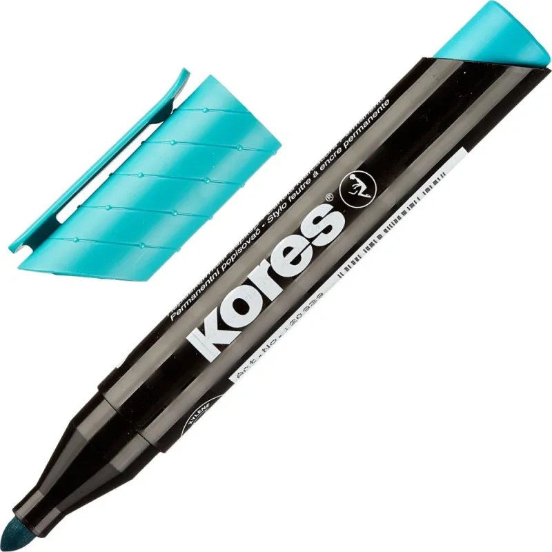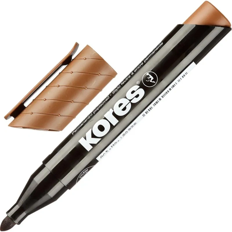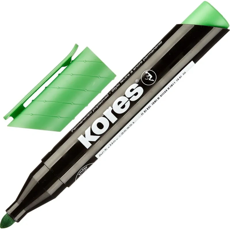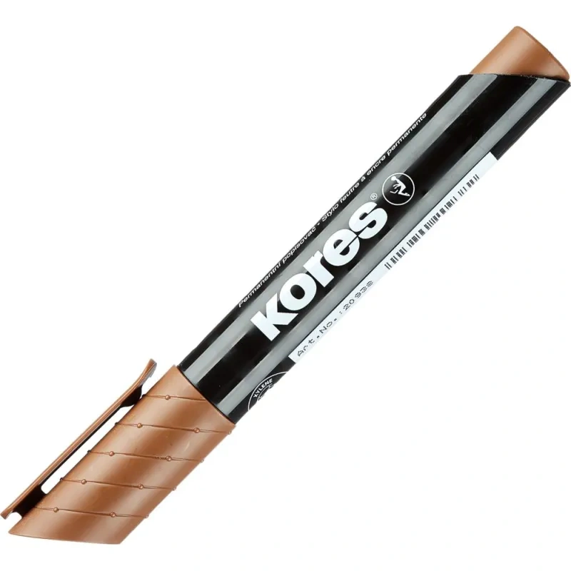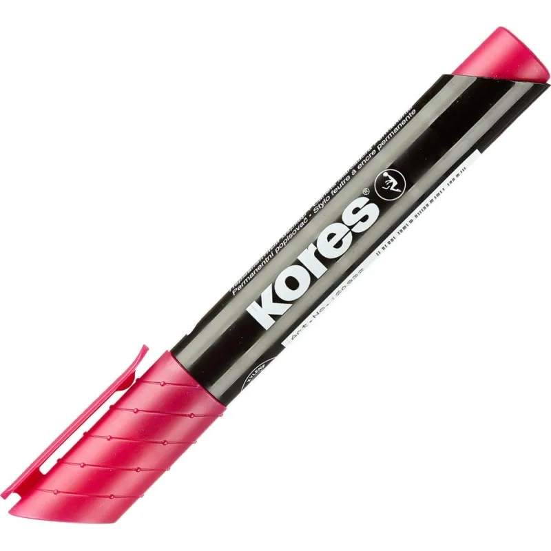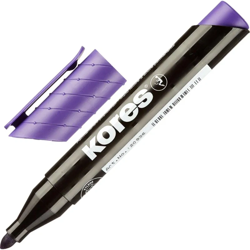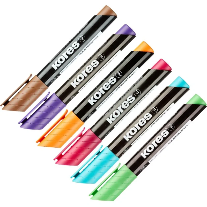 Перманентный маркер Kores с круглым наконечником. Цвет чернил: розовый, фиолетовый, коричневый, салатовый, зеленый, оранжевый. Нестираемые чернила на спиртовой основе. Подходит для письма на различных поверхностях. Позволяет проводить линии толщиной 1.5–3 мм. Безопасен при использонии по назначению. Хранить в горизонтальном положении в сухом месте при температуре от 10 до