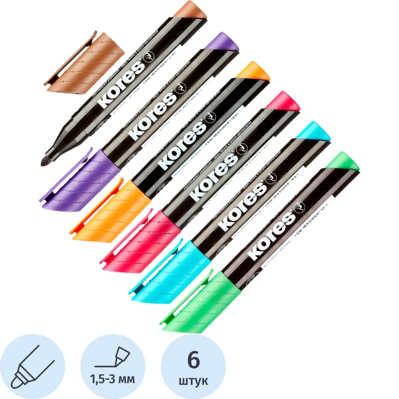 Маркер перманентный KORES набор 6 цв. 1,5-3 мм круглый наконечник '20902