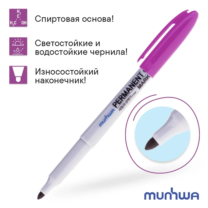 Маркер перманентный Munhwa фиолетовый, 1.5мм, пулевидный наконечник