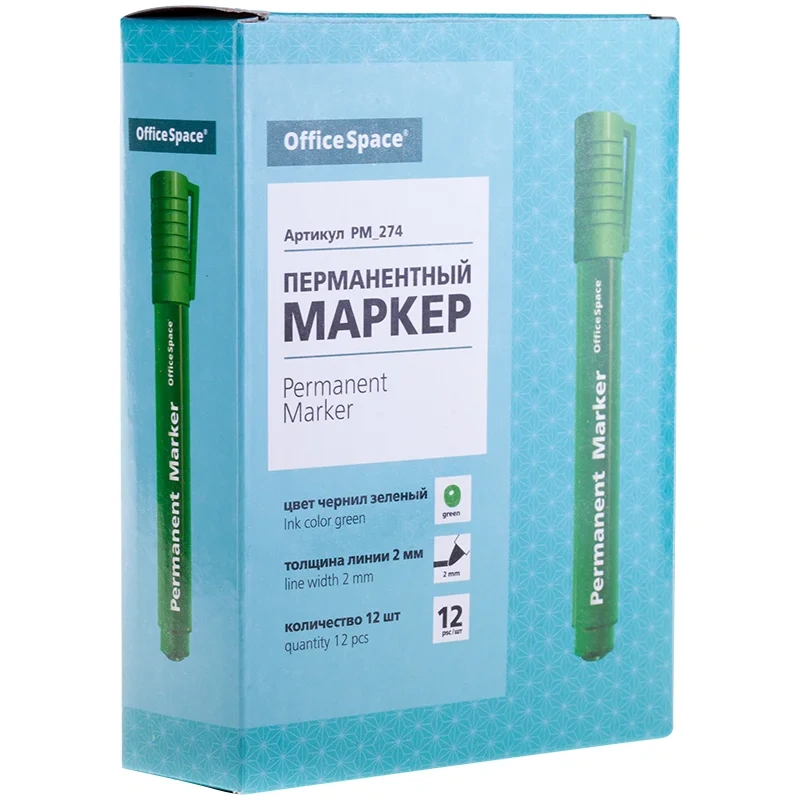 Маркер перманентный Officespace 8004 зеленый, 2мм, пулевидный наконечник