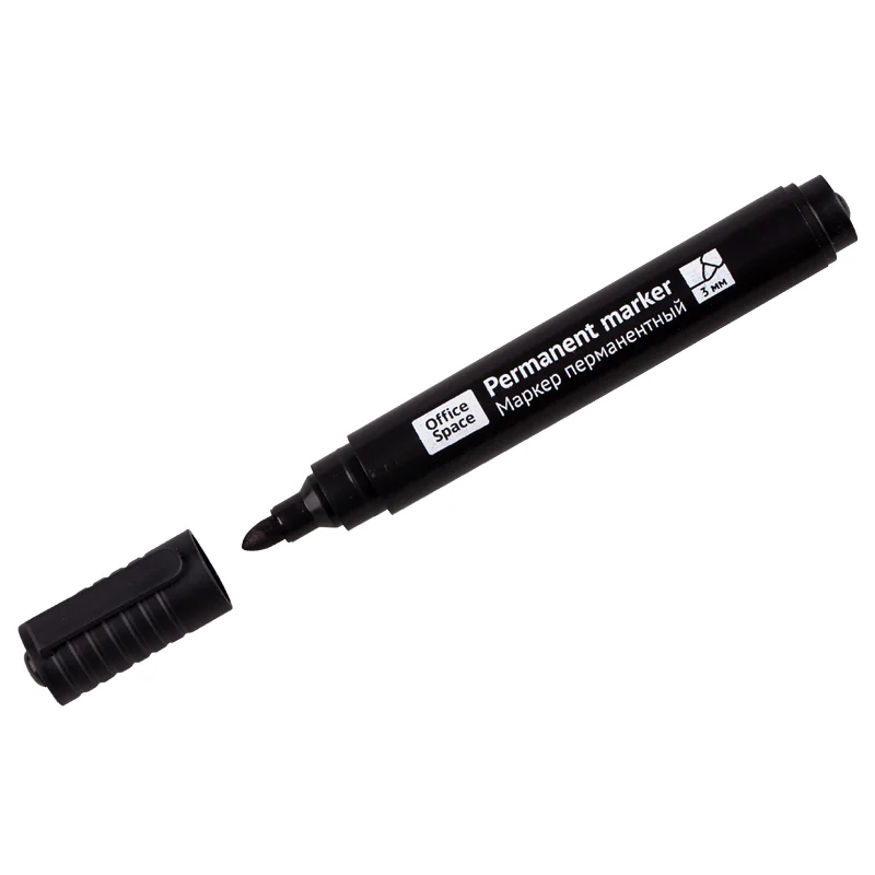 Маркер перманентный Officespace 8004А черный, 3м, пулевидный наконечник