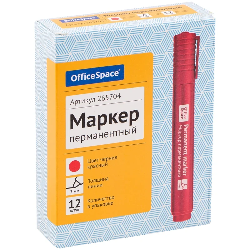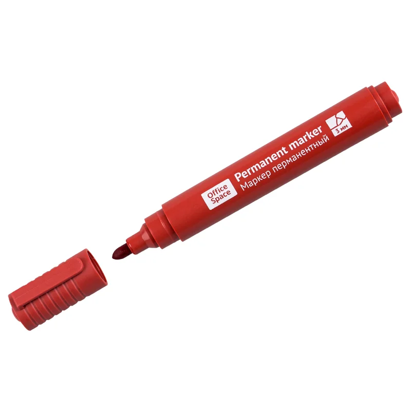 Маркер перманентный Officespace 8004А красный, 3мм, пулевидный наконечник