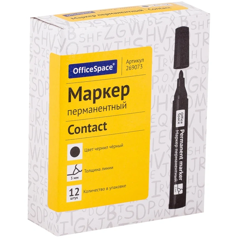 Маркер перманентный Officespace Contact черный, 3мм, пулевидный наконечник