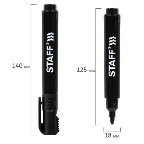 Маркер перманентный черного цвета обладает круглой формой корпуса из пластика, диаметр которого 18 мм. Уникальный колпачок оснащен насечкой для вскрытия коробок, что делает маркер незаменимым помощником как на складе, так и при проведении внутренних работ в доме или переезде. Толщина линии письма - 3 мм. Особая нестираемая основа перманентного маркера обеспечивает такие качества, как стойкость к воздействию воды, ультрафиолету, низких и высоких температур. Благодаря спиртовой основе чернила быстро сохнут и не размазываются. Плотно закрывается колпачком, что предотвращает высыхание наконечника и чернил. Цвет корпуса и колпачка с клипом и соответствует цвету чернил.