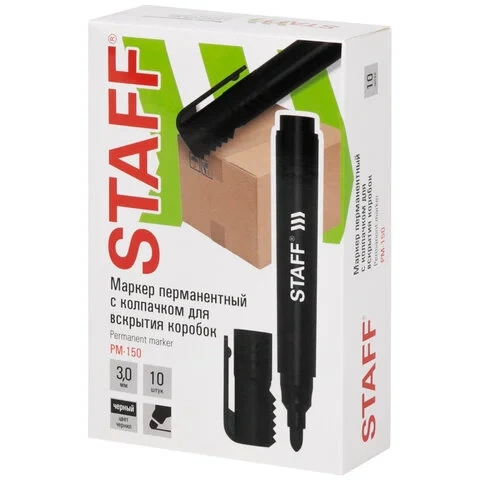 Маркер перманентный с колпачком для вскрытия коробок STAFF 'Basic' LOGISTIC PM-150, ЧЕРНЫЙ, 3 мм, 15