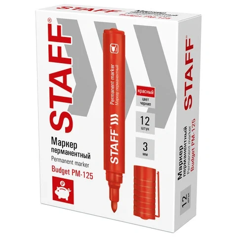 Маркер перманентный Staff Basic Budget PM-125 красный, 3мм, круглый наконечник