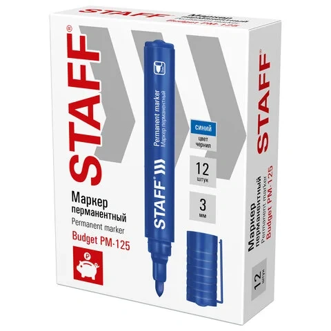 Маркер перманентный Staff Basic Budget PM-125 синий, 3мм, круглый наконечник