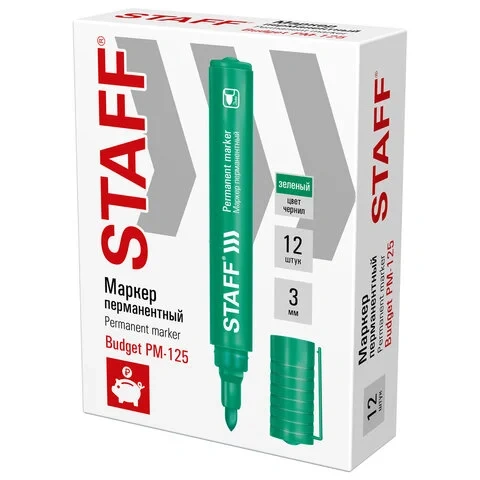 Маркер перманентный Staff Basic Budget PM-125 зеленый, 3мм, круглый наконечник