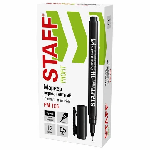 Маркер перманентный Staff Profit PM-105 черный, тонкий металлический наконечник 0.5мм