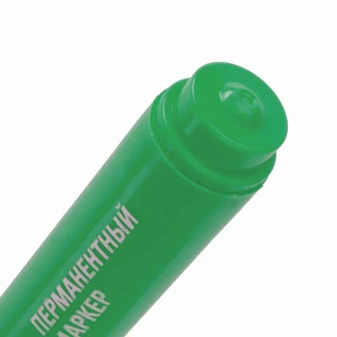 Маркер перманентный зеленого цвета обладает круглой формой корпуса из пластика, диаметр которого 15 мм. Толщина линии письма - 2,5 мм. Особая нестираемая основа перманентного маркера обеспечивает такие качества, как стойкость к воздействию воды, низких и высоких температур. Благодаря спиртовой основе чернила быстро сохнут и не смазываются. Фетровый наконечник обеспечивает экономный расход чернил. Изделие не перезаправляется. Плотно закрывается колпачком, что предотвращает высыхание наконечника и чернил. Цвет корпуса и колпачка соответствует цвету чернил.