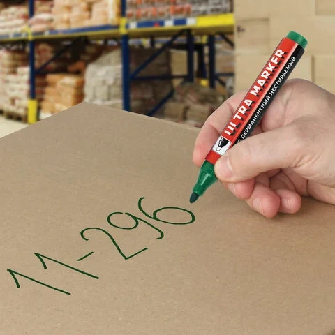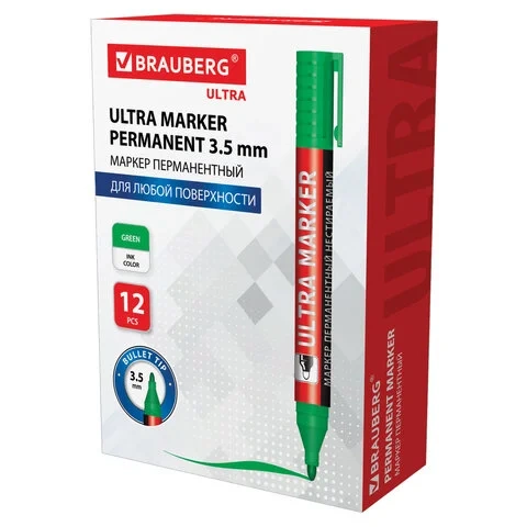 Маркер перманентный ULTRA MARKER, ЗЕЛЕНЫЙ, 3,5 мм, с клипом, BRAUBERG, 152207