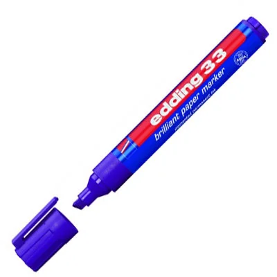 Маркер еdding-33 предназначен для нанесения постоянных, практически не удаляемых надписей на любые гладкие поверхности. Надпись, нанесенная маркером еdding-33, устойчива к выгоранию, устойчива к смыванию водой. Чернила маркера еdding-33 пигментные, практически без запаха. Маркер заправляется пигментными чернилами edding PTK-25 refill ink. Пигментные чернила изготавливаются на водной основе и, в отличие от перманентных чернил менее токсичны и не горючие. Пигментные чернила edding не протекают через бумагу, поэтому широко используются для маркировки бумажной упаковки, почтовых отправлений, бумаги в рулонах и т.д.