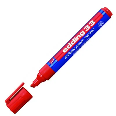 Маркер еdding-33 предназначен для нанесения постоянных, практически не удаляемых надписей на любые гладкие поверхности. Надпись, нанесенная маркером еdding-33, устойчива к выгоранию, устойчива к смыванию водой. Чернила маркера еdding-33 пигментные, практически без запаха. Маркер заправляется пигментными чернилами edding PTK-25 refill ink. Пигментные чернила изготавливаются на водной основе и, в отличие от перманентных чернил менее токсичны и не горючие. Пигментные чернила edding не протекают через бумагу, поэтому широко используются для маркировки бумажной упаковки, почтовых отправлений, бумаги в рулонах и т.д.