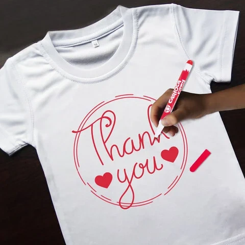 Набор маркеров с тонким пишущим узлом со специальными чернилами для ткани. Для большей устойчивости рекомендуется прогладить горячим утюгом нанесенное изображение. Вещи можно стирать в стиральной машине при температуре до 60 градусов