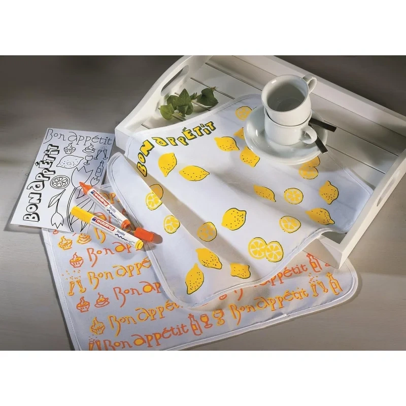 Пигментные чернила жёлтого цвета отличаются светостойкостью, быстро сохнут, практически не пахнут. Маркер по ткани имеет наконечник круглой формы, толщина линии — 3 мм, что позволяет делать как тонкие, так и более заметные надписи. Подходят для творчества, создания уникальных дизайнов одежды или декоративных предметов.
