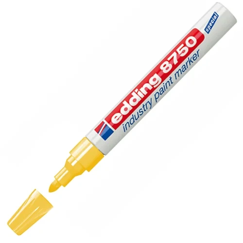Надписи хорошо заметны на тёмных поверхностях, а специально разработанный состав Edding 8750 растворяет масляную плёнку. Толщина линии — 2–4 мм. Размеры маркера: диаметр 15 мм, длина 141 мм. Температура маркировки: от −80°С до +400°С. Температура поверхности: от — 15°С до + 95°С.