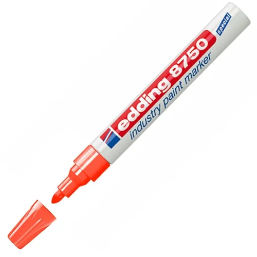 Маркер промышленный лаковый Edding 8750 красный, 2-4мм, упроченный пулевидный наконечник, универсальный, алюминиевый корпус