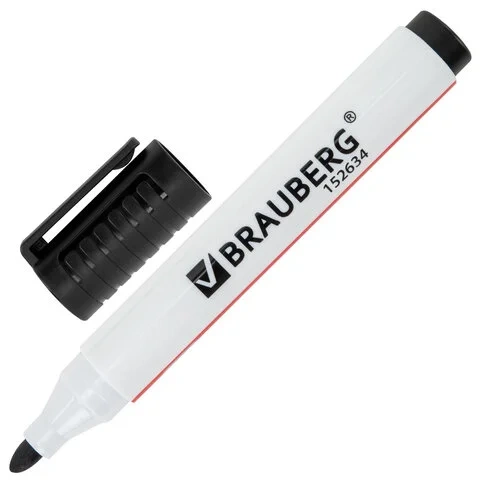 Маркер стираемый для белой доски ЧЕРНЫЙ, BRAUBERG 'ULTRA WHITEBOARD MARKER', 3 мм, с клипом, 152634