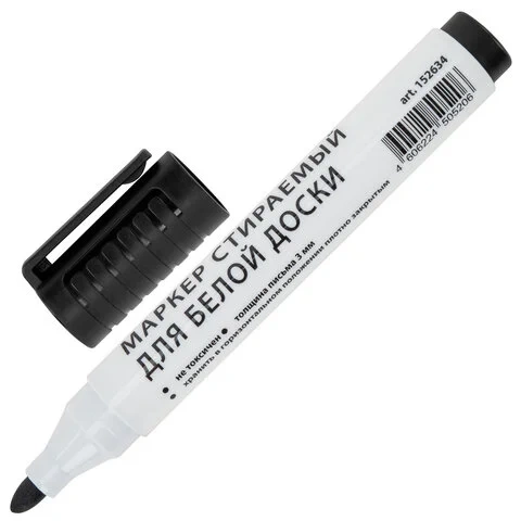 Цвет колпачка соответствует цвету чернил. Изделие не предназначено для повторной заправки. Маркер предназначен для письма на всех типах магнитно-маркерных поверхностей. Круглый пластиковый корпус обеспечивает удобное письмо.