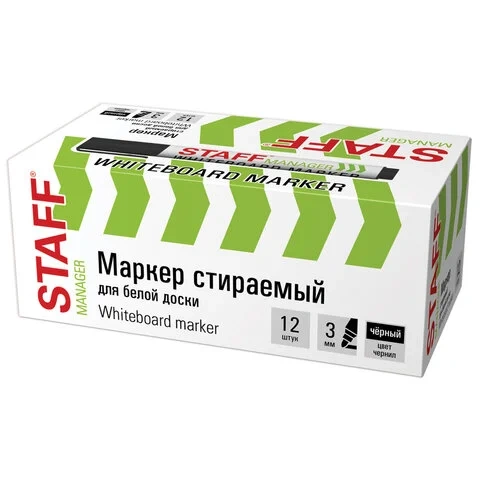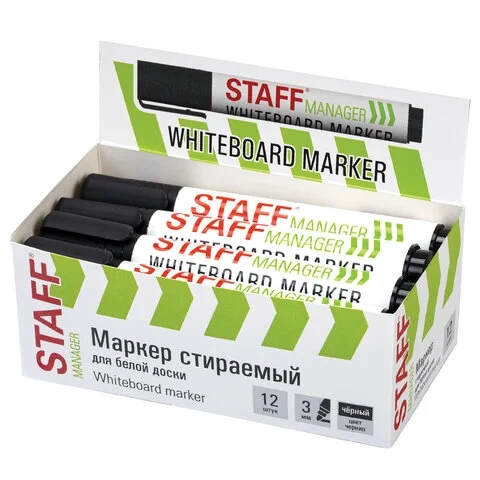 Маркер стираемый для белой доски ЧЕРНЫЙ, STAFF 'MANAGER' WBM-300, 3 мм, с клипом, 152636