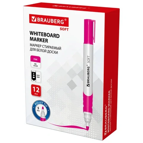 Маркер для досок Brauberg Soft розовый, 5 мм, резиновая вставка