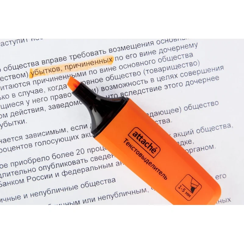Текстовыделитель Attache Palette оранжевый обеспечивает превосходное выделение текста, предназначенный для маркировки текста на бумаге любой плотности. Текстовыделитель на водной основе в пластиковом корпусе. Светоустойчивые чернила на водной основе не выцветают даже на открытом солнце и не размазываются в процессе. Чернила не промокают бумагу. Чернила не имеют запах. Цвет чернил: оранжевый — соответствует цвету колпачка. Скошенный наконечник имеет толщину линии письма от 1 до 5 мм, что обеспечивает удобство при работе с текстом, напечатанным мелким шрифтом, или таблицами. Текстовыделитель Attache Palette поможет выделять самое важное в документах или просто тексте, и Вы сможете обработать и не забыть больше полезной информации.