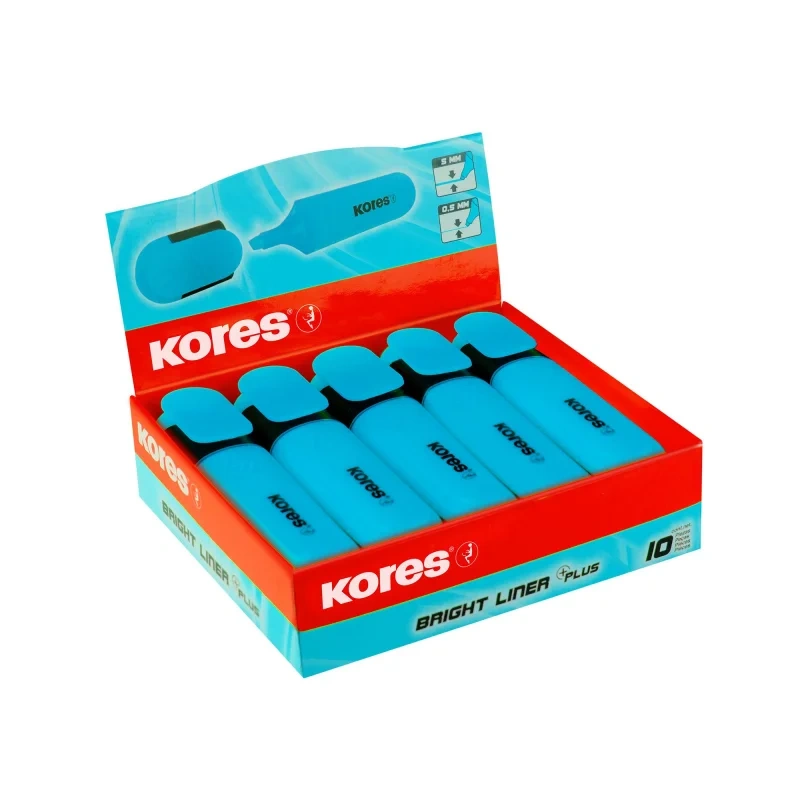 Текстовыделитель Kores Bright Liner Plus синий, 0.5-5 мм, скошенный