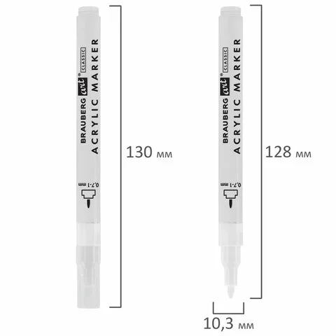 Маркеры акриловые с круглой формой корпуса из пластика. В комплекте 2 цвета. Толщина линии письма – 0,7-1 мм. Объем краски – 3 мл. Пигментированная акриловая краска на водной основе практически не имеет запаха, после высыхания обладает повышенной светостойкостью и водостойкостью.